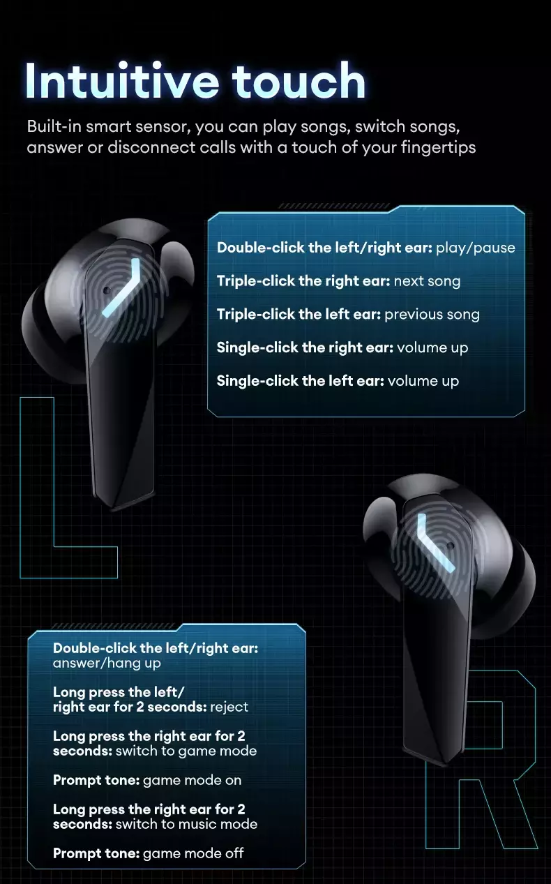 Chip Bluetooth 5.4Chip de baixa latência para jogosLatência ultrabaixa de 45msBateria de longa duração 26hA conexão do microfone é mais estávelExibição de energia em tempo realEfeitos de iluminação legais